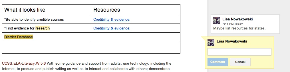 Another feature that allows for easy collaboration in Google Documents is the ‘Comment Feature’. This feature allows me to highlight a particular text and comment on it, for clarification or questions. It’s really very easy.