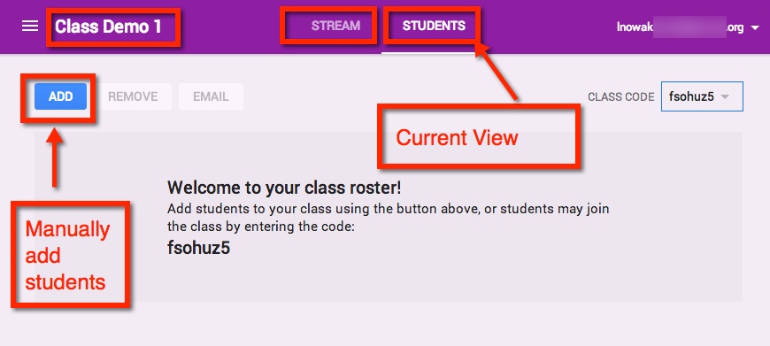 Adding your own students only takes a few simple clicks. Start by switching your current view from ‘Stream’ to ‘Students’.