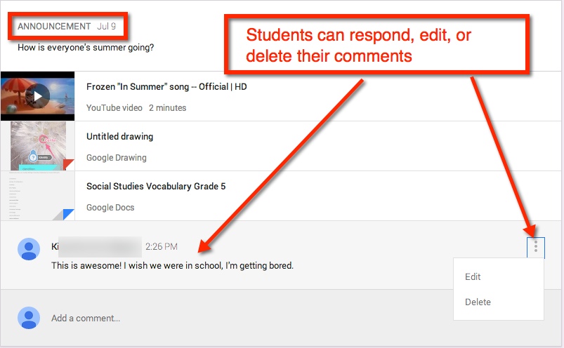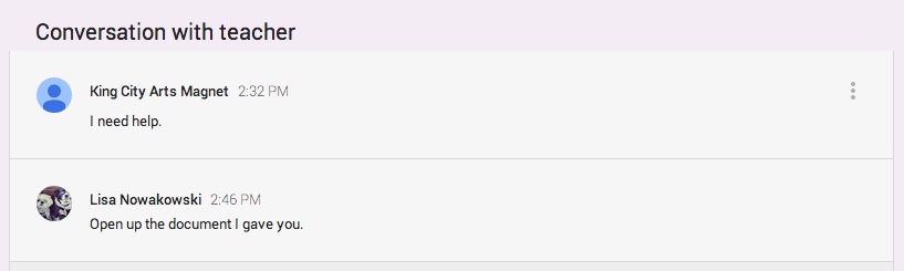 If the student has a question or comment, it can be made in this stream privately.
