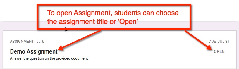 IF the teacher shared a document with the student(s), then the document title can be chosen and it will open in a new window. The student(s) can then edit in that document. Once the assignment is completed, the student can turn in the document from the Assignment Page.