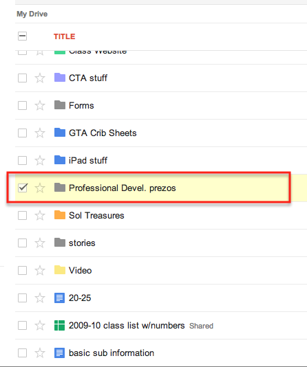 I currently have several shared folders. I share an ELD folder with prezos and documents with several teachers in my district. I also share a Math folder with homework forms.